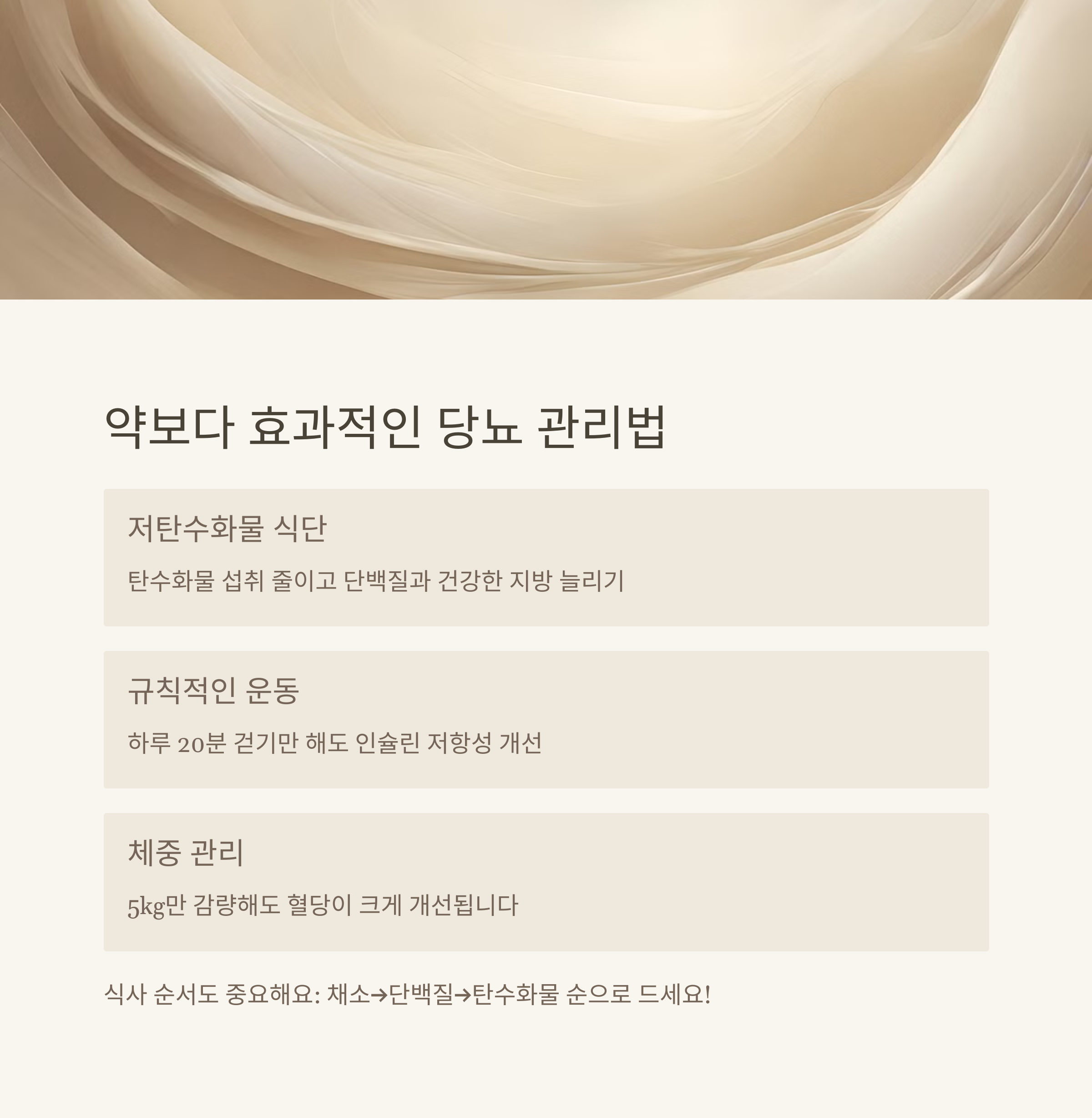 특히 ‘식사 순서’를 바꾸는 것만으로도 혈당 급증을 막을 수 있어요.
