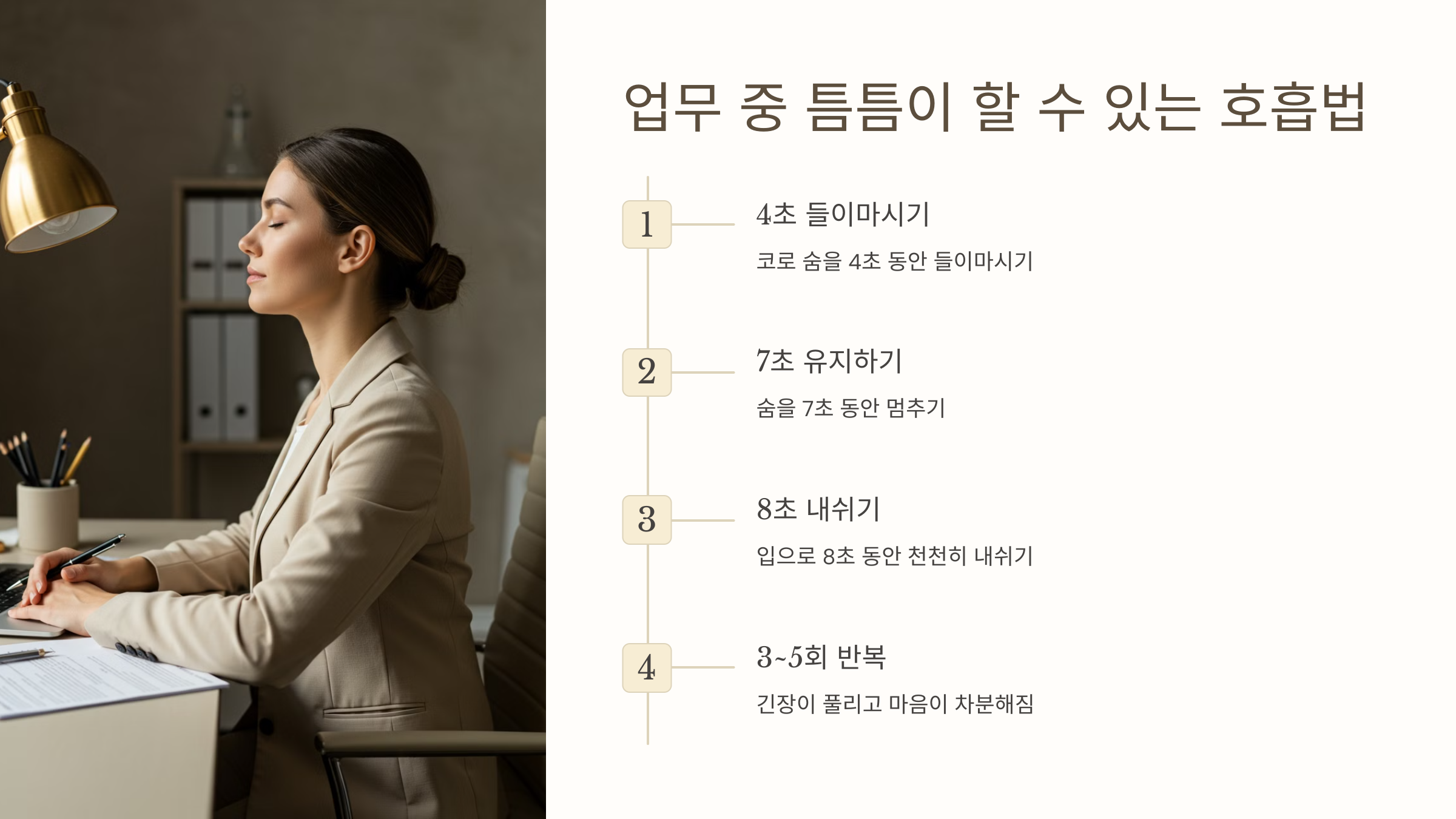 - 업무 중 틈틈이 할 수 있는 호흡법
