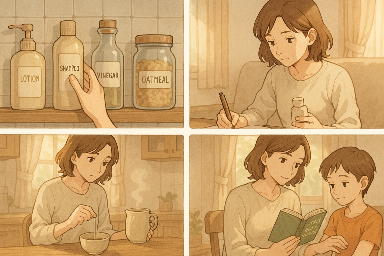 아이 피부는 더 민감해요. 무향·무자극 제품만 사용하고, 자연 요법은 패치 테스트 후 진행하세요!