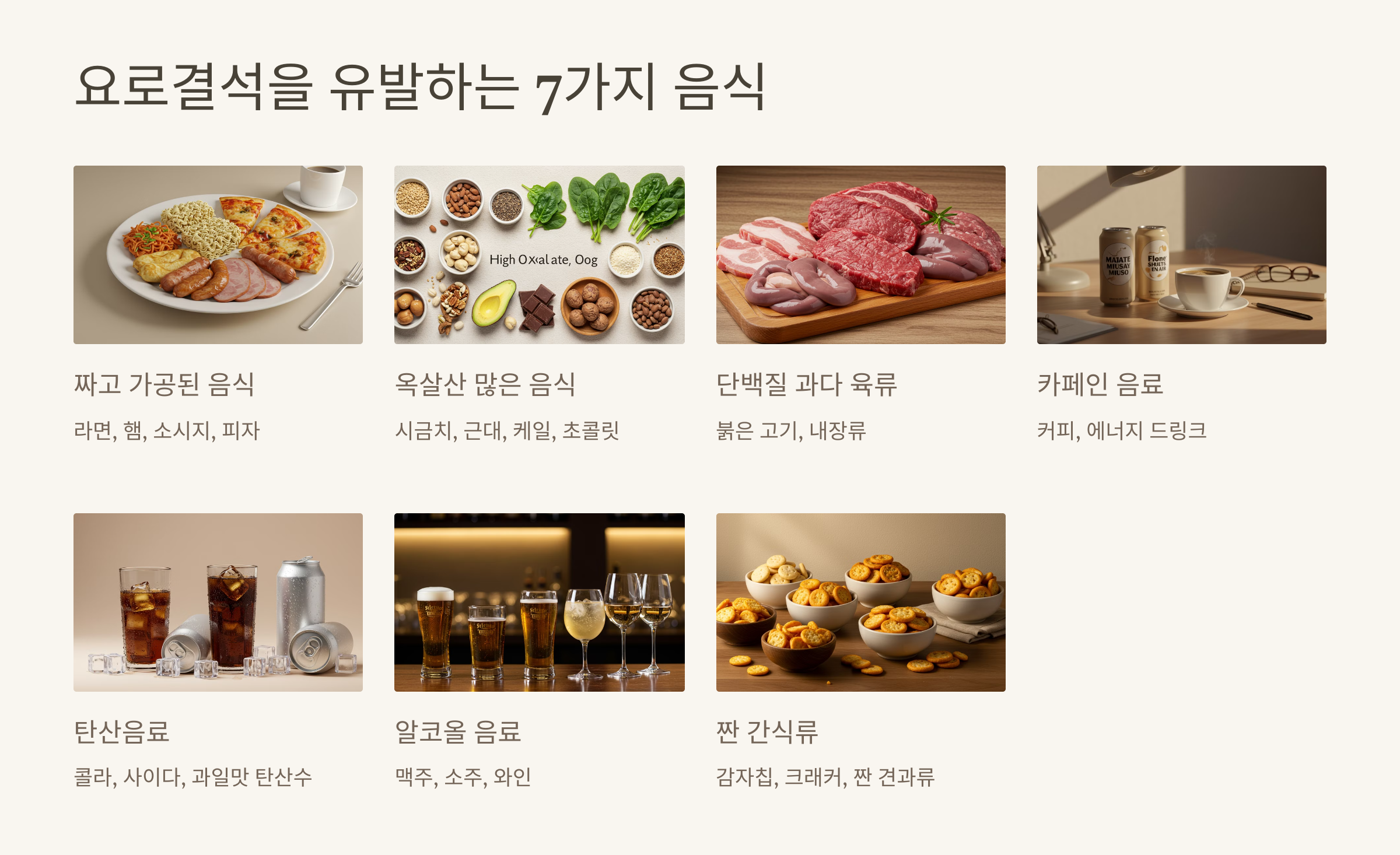 바쁜 일상 속에서 아무 생각 없이 먹던 음식들이 요로결석의 원인이 될 수도 있습니다.